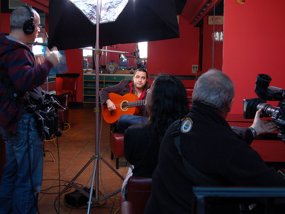 Production still - Shooting an interview with guitarist Ricardo Marlow in Washington, DC.